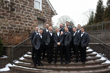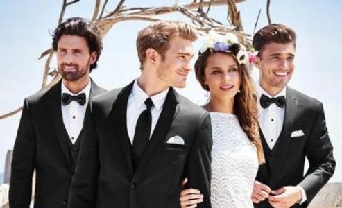 ELEGANCE NEVER GOES OUT OF STYLE! There is nothing more glamorous than the sophisticated elegance, romance and style of a well tailored tuxedo for the groom and his groomsmen to compliment the bride and her bridesmaids. We will help you find the right style tuxedo rental, suit rental, and accessories for your wedding or commitment ceremony.
